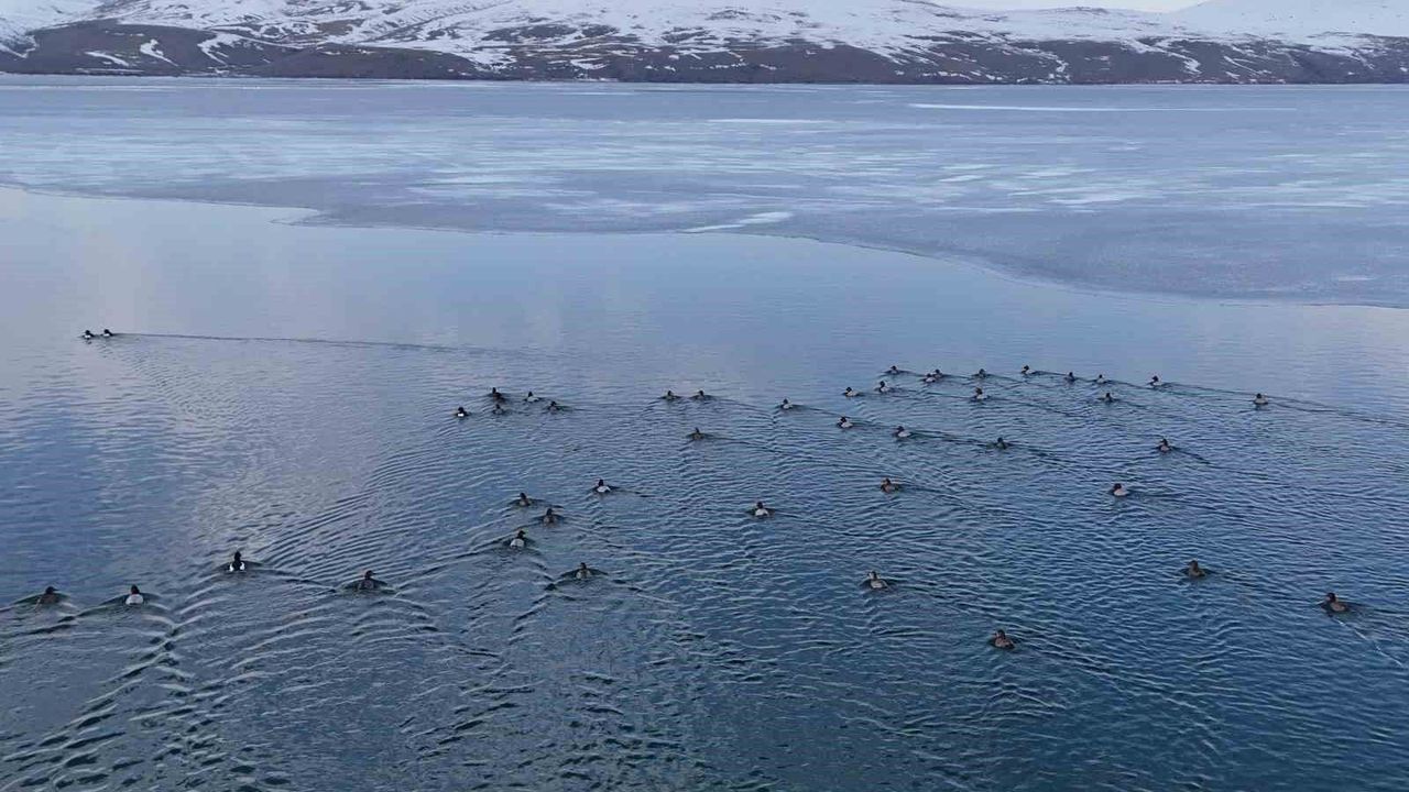 Günlerce beyaz örtüyle kaplı kalan gölde, su yüzeyinin yeniden ortaya çıkmasıyla birlikte doğa adeta canlandı. Buzların arasından süzülen Tepeli Patka ve Elmabaş Patka ördekleri, göl yüzeyinde sergiledikleri ahenkli hareketlerle izleyenleri hayran bıraktı. Ördeklerin kanat çırpışları ve su üzerindeki zarif süzülüşleri güzel görüntüler oluştururken, ortaya çıkan manzara, doğaseverlerin ilgisini çekti.