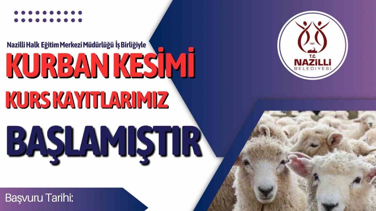 Her bayram döneminde yaşanan kazaların önüne geçmek ve vatandaşların kurban kesim işlemlerini daha güvenli şekilde gerçekleştirmelerini sağlamak amacıyla açılan kurs için kayıtlar başladı. Eğitime katılmak isteyen vatandaşlar, 18 Nisan Cuma gününe kadar Nazilli Belediyesi İnsan Kaynakları ve Eğitim Müdürlüğü’ne şahsen başvurarak kayıt yaptırabilecek. Bayram sürecinde hem bireysel hem de toplumsal faydanın sağlanması planlanan kursun sonunda katılımcılara sertifika verilecek.