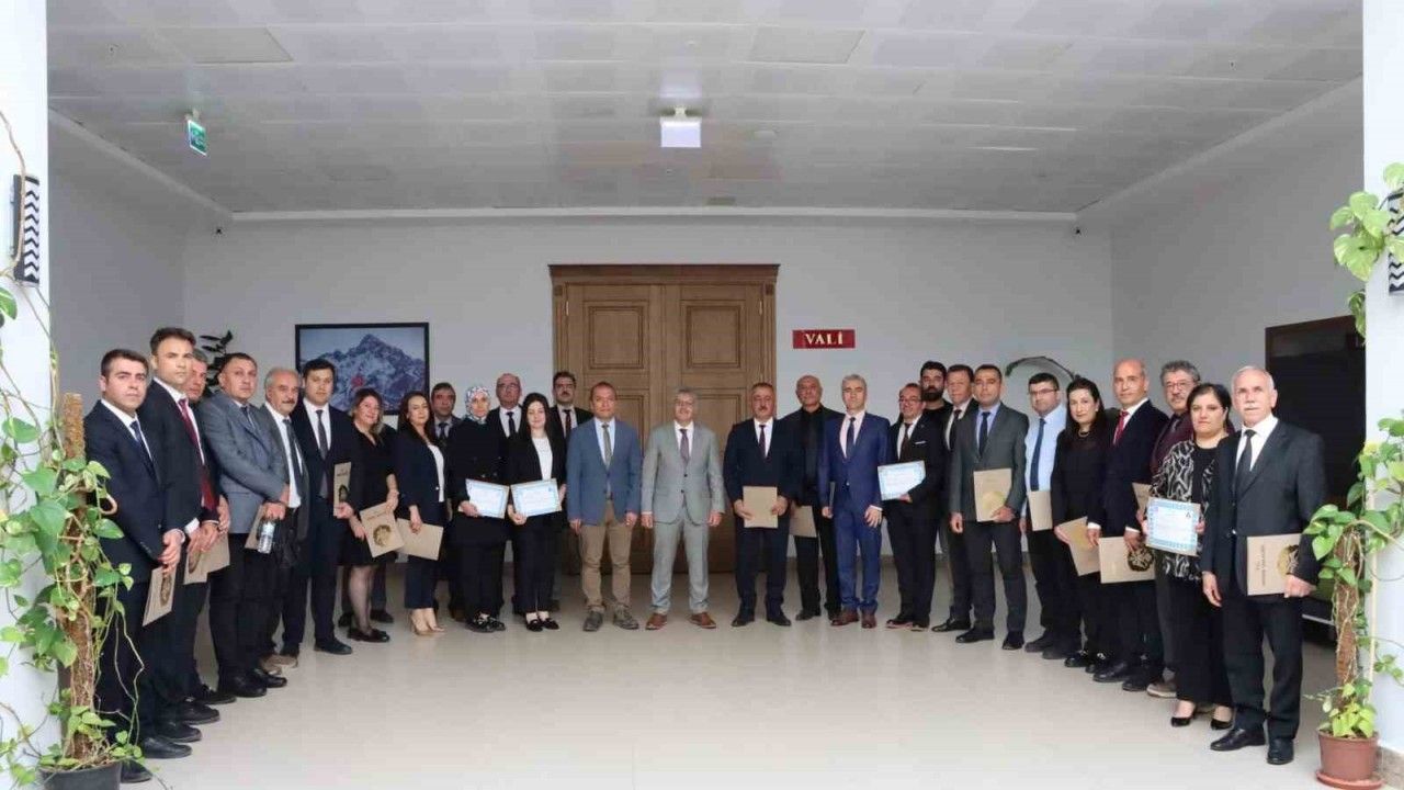 Niğde Valisi Cahit Çelik, İl Tarım ve Orman Müdürlüğü’nde görev yapan İl Müdürü Asım Baş, şube müdürleri ve personeli, gösterdikleri özverili ve başarılı çalışmalar nedeniyle başarı belgesiyle ödüllendirdi.