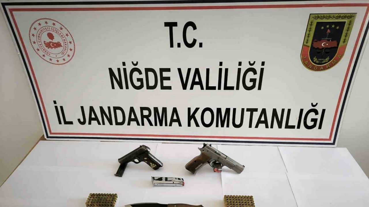 Altunhisar ilçesine bağlı Çömlekçi Köyü’nde jandarma ekipleri tarafından belirlenen bir şüphelinin evinde arama yapıldı. Yapılan arama neticesinde; 9 mm çapında tabanca, 7,65 mm çapında bir tabanca, 259 adet fişek ve bir adet bıçak ele geçirildi.