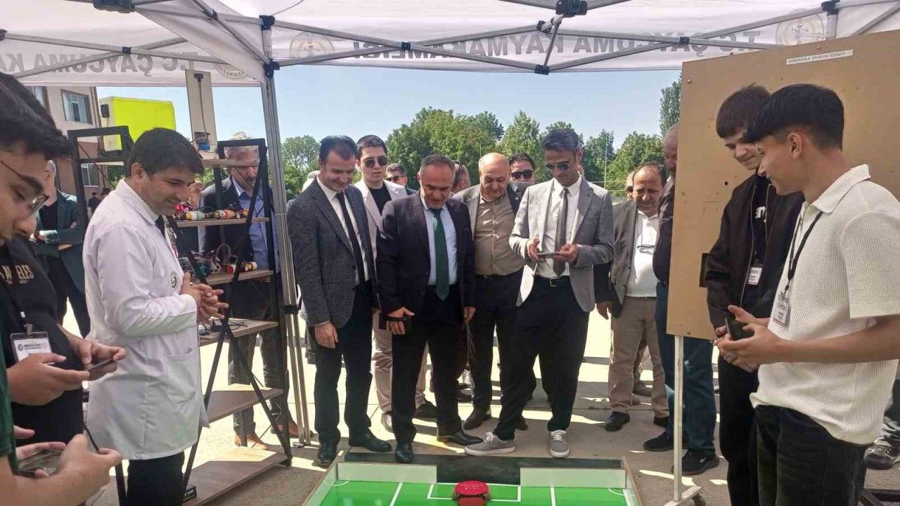 Sergi alanını gezerek öğrencilerle tek tek ilgilenen Kaymakam Kaya, projeler hakkında bilgi aldı, öğrencilerin yeteneklerini ve üretkenliğini takdir etti.