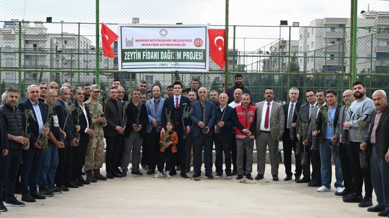 Mardin Büyükşehir Belediyesi Tarımsal Hizmetler Daire Başkanlığı ile Nusaybin Kaymakamlığı iş birliğinde hayata geçirilen "Zeytin Fidanı Dağıtım Projesi" kapsamında, Nusaybinli çiftçilere 8 bin adet zeytin fidanı dağıtıldı.