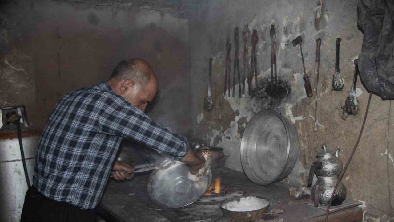 Gaziantep’te 8 yaşında iken çırak olarak başladığı kalaycılık mesleğini yarım asırdır severek sürdüren 65 yaşındaki Hüseyin Amiklioğlu, mesleğini ilerleyen yaşına rağmen devam ettiriyor.
