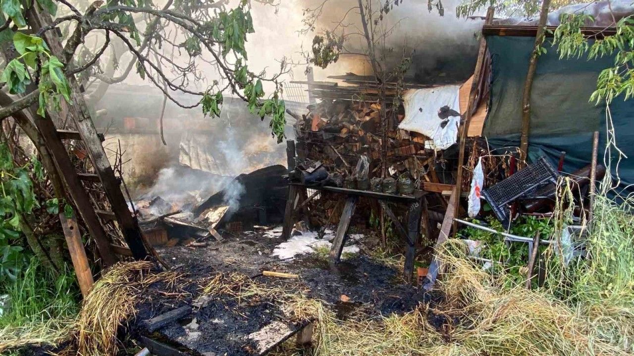 Kocaeli’nin Kartepe ilçesinde çıkan yangında odunluk alev alev yandı.