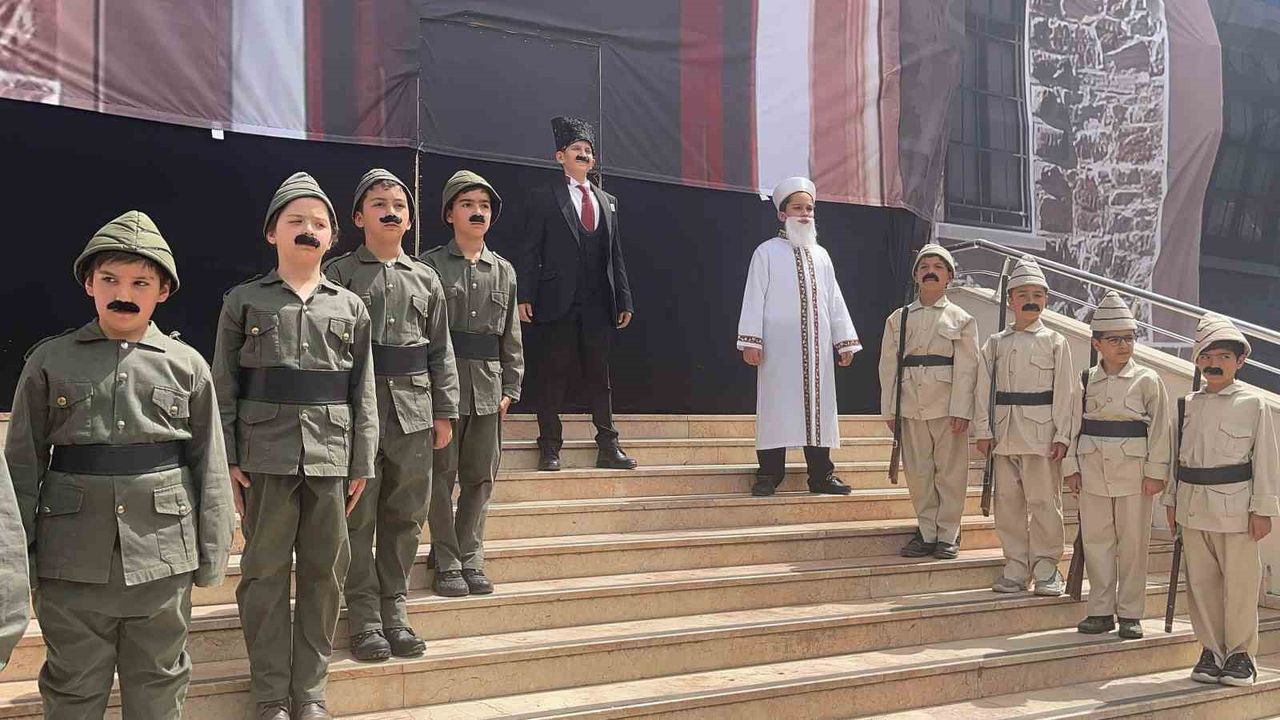 Osmaniye’de 23 Nisan Ulusal Egemenlik ve Çocuk Bayramı’nda öğrenciler temsili olarak Türkiye Büyük Millet Meclisinin açılışını canlandırdılar.