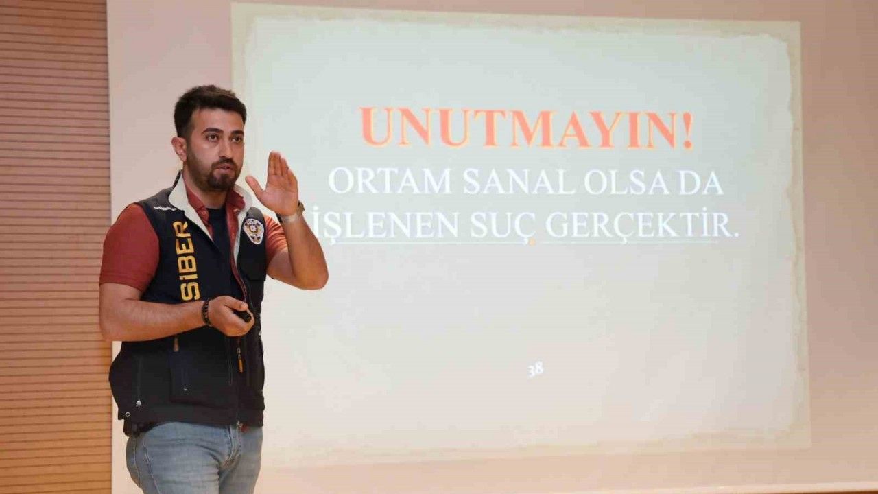 Teknolojinin hızla geliştiği günümüzde internet ve sosyal medya kullanımında dikkat edilmesi gereken hususlara değinerek, özellikle gençlerin karşılaşabileceği siber tehditler hakkında bilgiler veren Polis Memuru Sami Sarıkaya, "Siber suçların, fiziksel olarak işlenen tehdit, şantaj, gasp gibi suçlardan hiçbir farkı yoktur." sözleriyle dijital suçların ciddiyetine dikkat çekti.