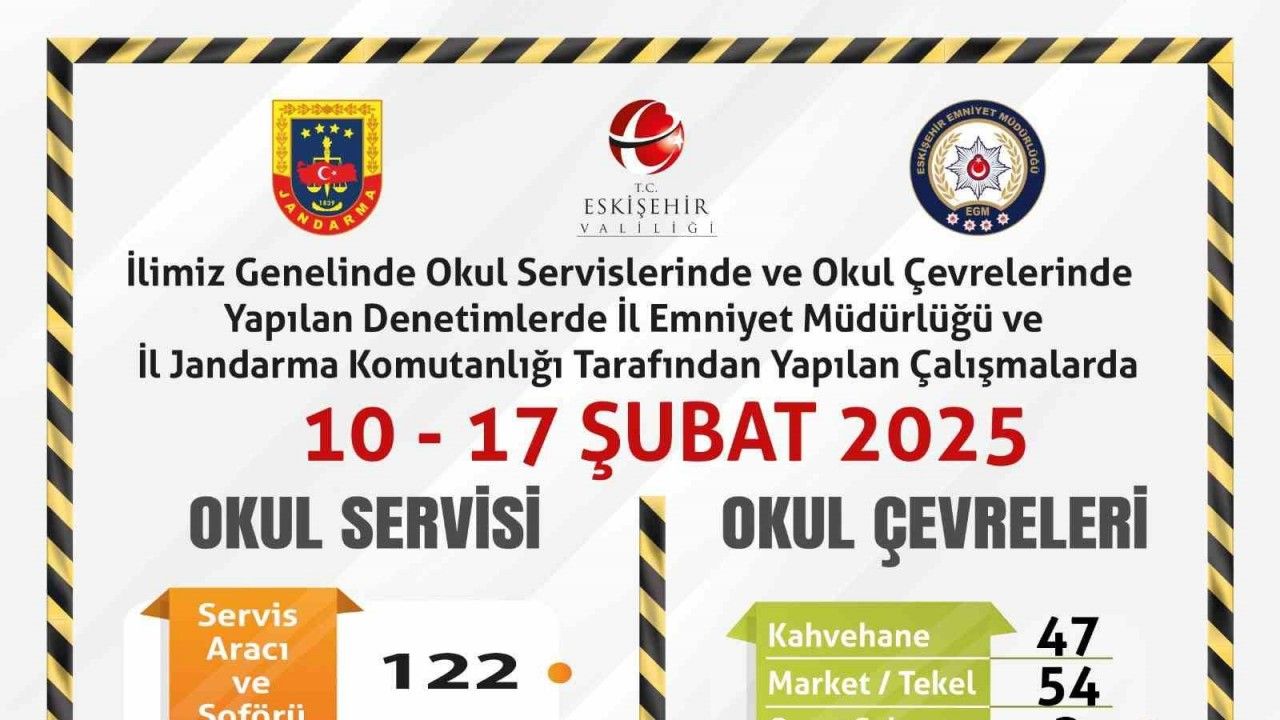 Eskişehir’de polis ve jandarma ekiplerince 122 servis aracı ile okul çevrelerinde bulunan 194 farklı mekan kontrol edilirken, 357 şahsın kimlik bilgileri sorgulandı.