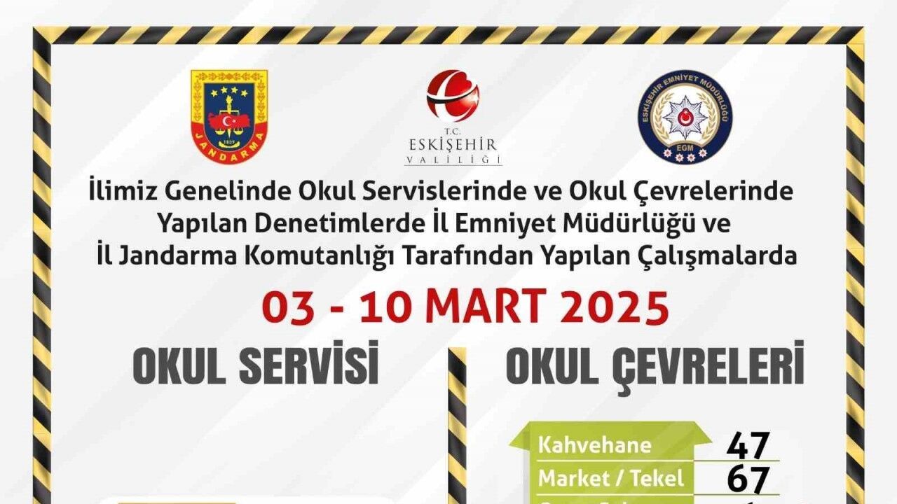 Edinilen bilgilere göre, İl Emniyet Müdürlüğü ve İl Jandarma Komutanlığı ekiplerince okul servisleri ile çevrelerine yönelik denetim gerçekleştirildi. Kent genelinde 3-10 Mart 2025 tarihleri arasında gerçekleştirilen denetimlerde; 91 servis aracı şoförü, 47 kahvehane, 67 market, 1 oyun salonu ile 73 park kontrol edildi. Ayrıca 369 şahsa kimlik sorgusu yapıldığı belirtildi.
