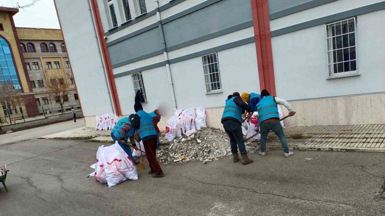 Çorum’da denetimli serbestlik yükümlüleri tarafından okulların bahçelerinde temizlik ve bitki bakım çalışması yapıldı.