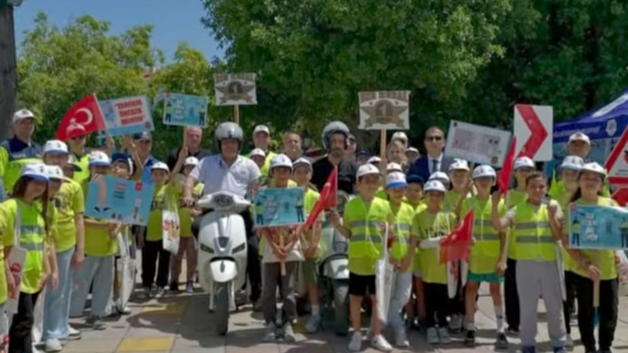Muğla’nın Ortaca ilçesinde Karayolu Güvenliği ve Trafik Haftası kapsamında minikler, Emniyet ve Jandarma ekipleriyle birlikte yaya önceliğine dikkat çekti.
