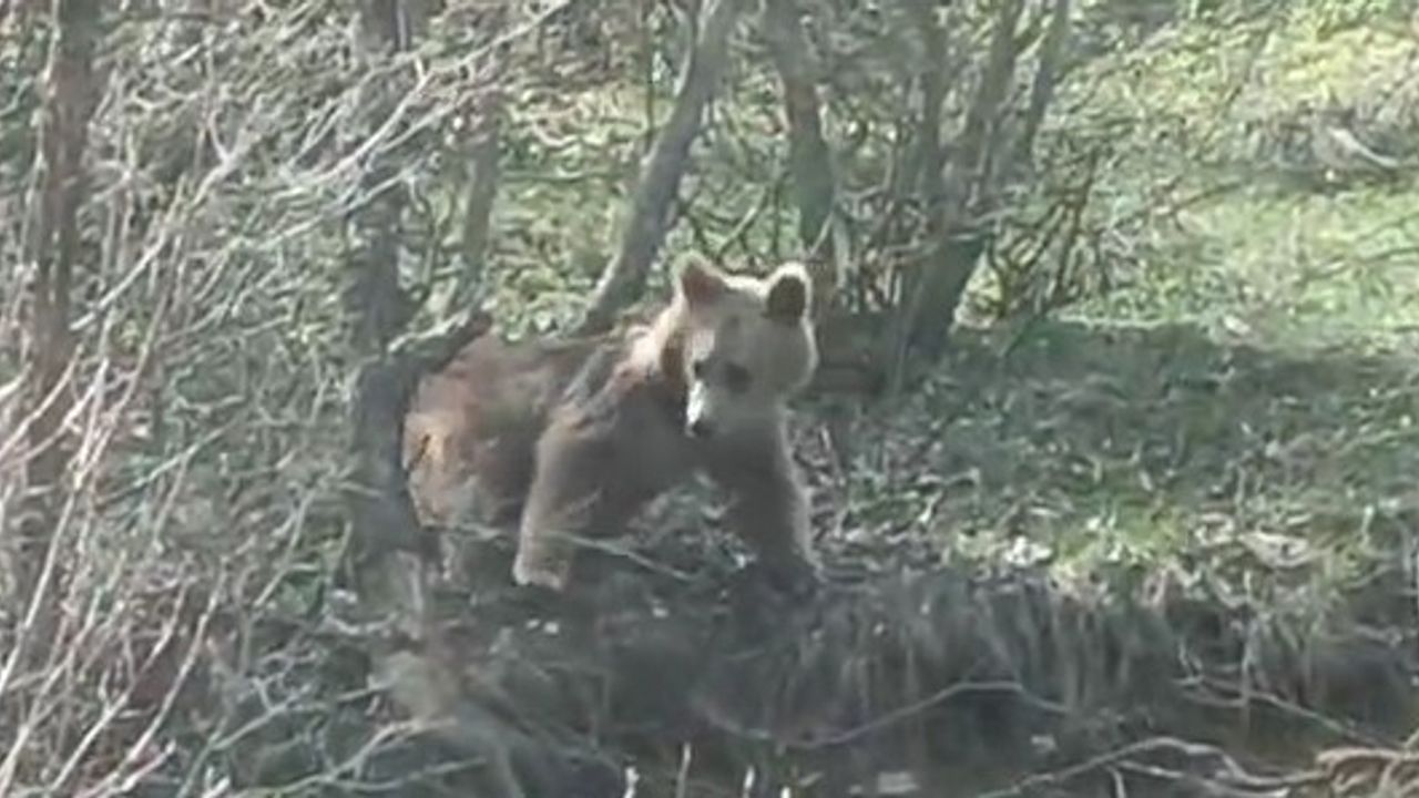 Havaların ısınmasıyla birlikte doğal yaşam alanlarında hareketlilik artarken, kırsalda gezintiye çıkan Kadir Kılıç, doğada dolaşan ayıyı fark etti. Aracını durduran Kılıç, ayıyı cep telefonu kamerasıyla kayıt altına aldı. Ayının dikkatini çekmek isteyen Kılıç, otomobilin kornasına da bastı. Bir süre çevrede dolaşan ayı, daha sonra koşarak gözden kayboldu.
