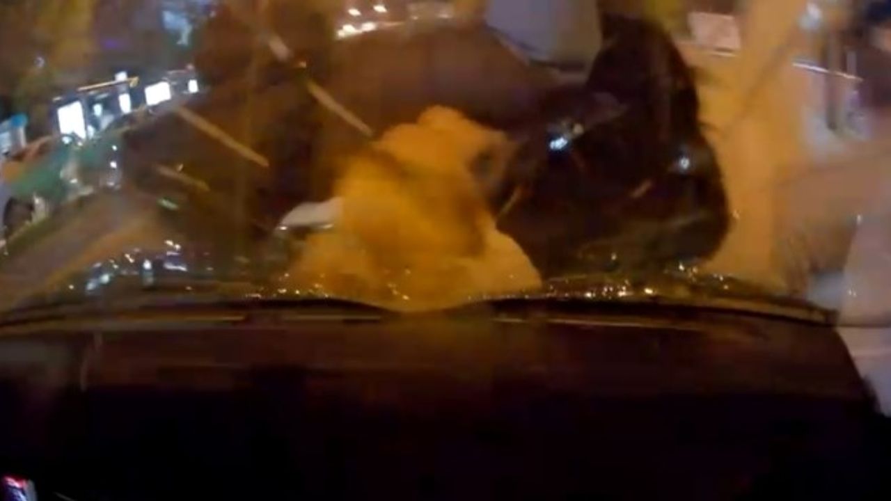 Edirne’de yaya geçidini kullanarak yolun karşısına geçmeye çalışan motosiklete otomobil çarptı. 2 kişinin yaralandığı kaza anı araç kamerasına yansıdı.