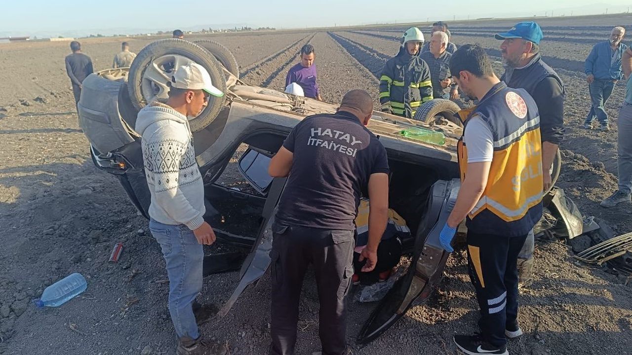 Hatay’da takla atarak ters dönen otomobildeki 3 kişi yaralandı.