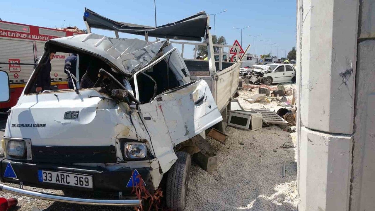 Mersin’de otomobilin çarptığı kamyonet yoldan çıkıp, otoban bağlantı yolunda yapımı süren köprü inşaatının duvarına vurdu. Feci kazada 1 kişi öldü, 1’i ağır 3 kişi de yaralandı.