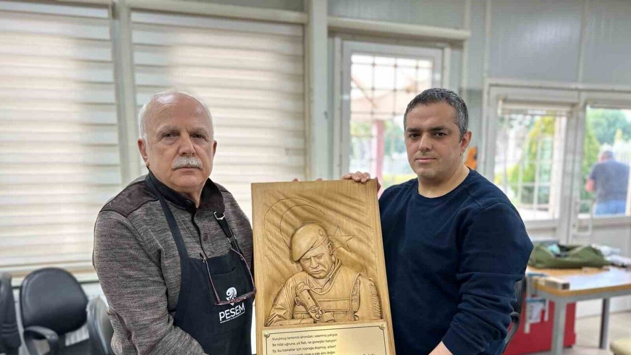 Nuri Akçaoğlu’nun kardeşi Ali Akçaoğlu, ağabeyinin dört yıldır ahşap oyma kursuna devam ettiğini belirterek süreci şöyle anlattı: "Ağabeyim, üç boyutlu bir portre çalışması yapmak istediğinde, kahramanlardan birini seçmeyi düşündü. Sonunda, yakın tarihimizin kahramanlarından Ömer Halisdemir’in portresini yapmaya karar verdi. Hocamızın da desteğiyle çalışmalarına başladı ve eser için Ayous ağacı tercih edildi. Yaklaşık yedi ay süren titiz bir çalışmanın ardından eser tamamlandı., bu süreç Ömer Halisdemir’in doğum gününe denk geldi ve bu da çalışmayı daha anlamlı kıldı. Bu eser, kahramanımıza duyduğumuz minnettarlığın bir ifadesi olarak kendisine ithaf edilmiştir."