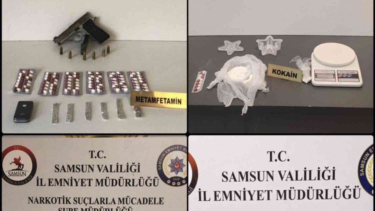 İl Emniyet Müdürlüğü Narkotik Suçlarla Mücadele Şube Müdürlüğü ekipleri tarafından İlkadım ve Canik ilçelerinde uyuşturucu madde ticareti yapan sokak satıcılarına yönelik gerçekleştirilen operasyonlarda önemli miktarda uyuşturucu madde ve silah ele geçirildi. İki ilçede yapılan operasyonlarda; 259 adet sentetik ecza, 33,57 gram kokain, 6 parça halinde satışa hazır 9,05 gram metamfetamin, 2 adet hassas terazi, 2 adet uyuşturucu kullanım aparatı, 2 adet ruhsatsız tabanca, 14 adet tabanca fişeği ele geçirildi.