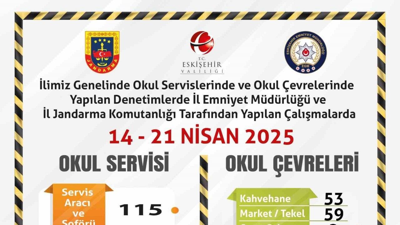 Eskişehir’de polis ve jandarma ekiplerinin denetimi sonucu 115 servis aracından 6’sının kusurlu olduğu tespit edilirken, okul çevrelerinde toplam 223 mekan kontrol edildi.