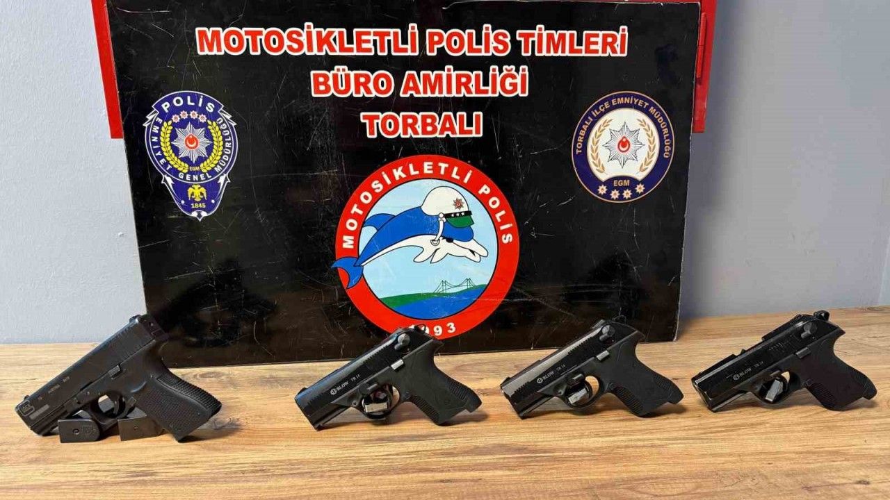 Torbalı İlçe Emniyet Müdürlüğüne bağlı Motosikletli Polis Timleri Büro Amirliği ekipleri, 12 Şubat günü saat 16.00 sıralarında Yedieylül Mahallesi 5610 Sokakta, elinde çuval bulunan bir şahsa yaklaştı. Şüphelinin elindeki çuvalı tarlaya atarak kaçması üzerine kovalamaca yaşandı. Kısa sürede yakalanan T.A. (24) adlı şüphelinin, tarlaya attığı çuval içerisinde ise 4 ruhsatsız tabanca, 5 tabanca şarjörü ve 72 adet tabanca fişeği olduğu görüldü.