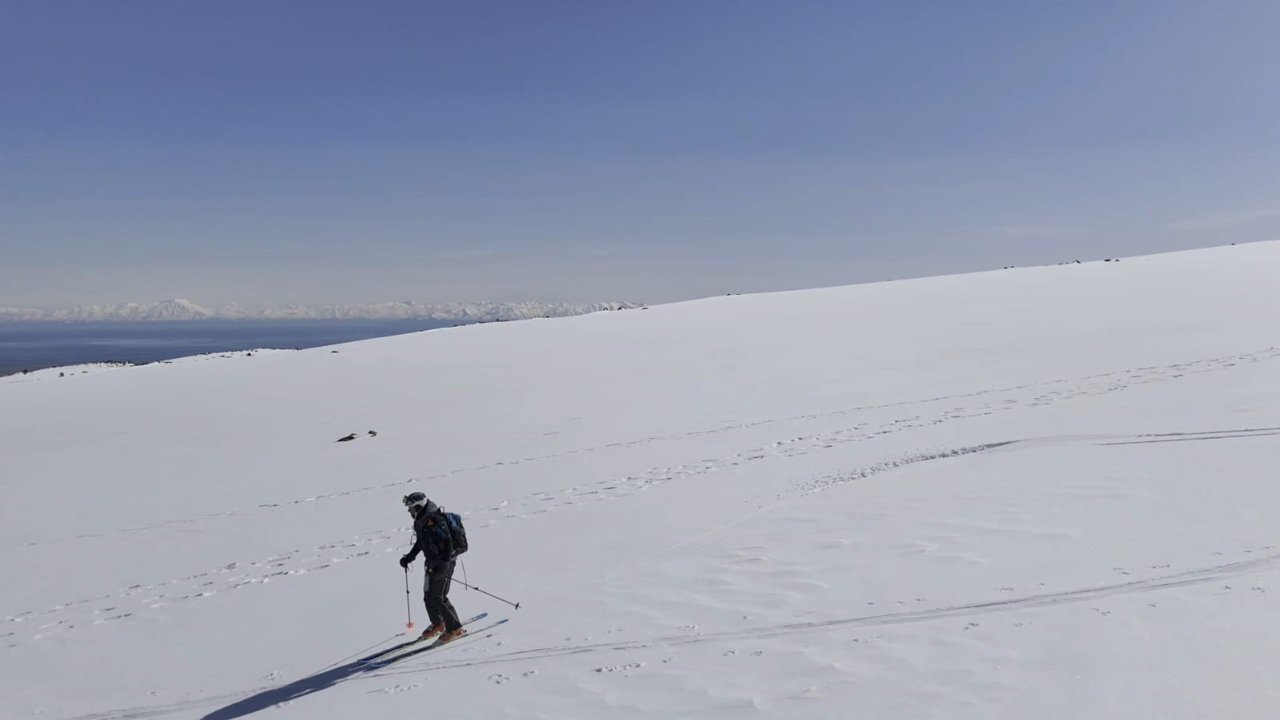 Ostowicz, bir haftadır bölgede olduklarını belirterek, 'Hava şartları çok kötü. Dün Nemrut Dağı'na tırmandık, bugün ise Süphan Dağı'na. Ancak sert rüzgar vardı. 3 bin 500 metreden kayakla inişe geçtik' diye konuştu.