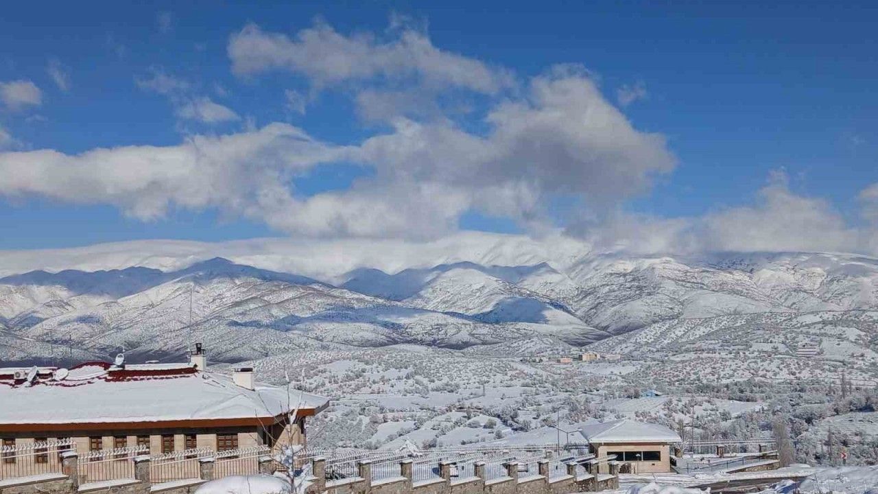 Malatya’nın Pütürge ilçesinde etkili olan kar yağışı bölgeyi beyaz örtüyle kaplarken, görsel bir şölen oluştu.