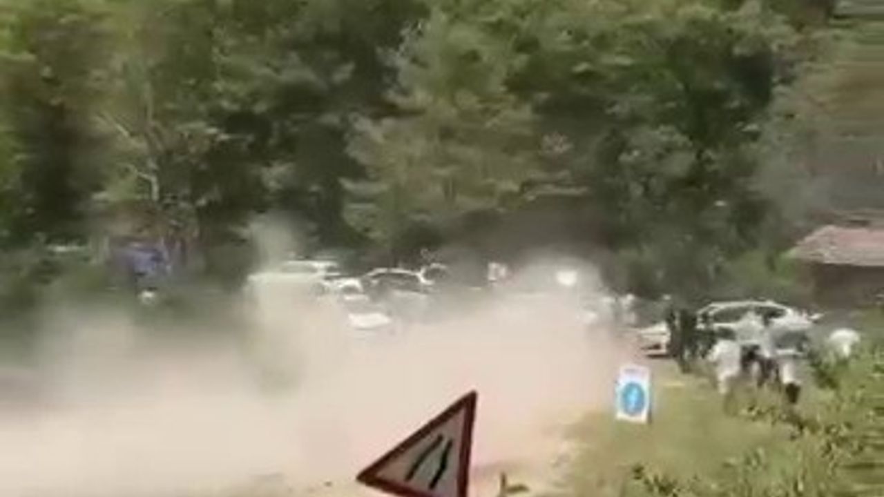 Bursa’nın Keles ilçesinde düzenlenen ralli yarışı sırasında kontrolden çıkan bir araç, seyircilerin bulunduğu bölgeye doğru savruldu. Kazada yaralanan olmazken, ralli pilotu aracıyla tekrar piste dönüp mücadeleye devam etti.