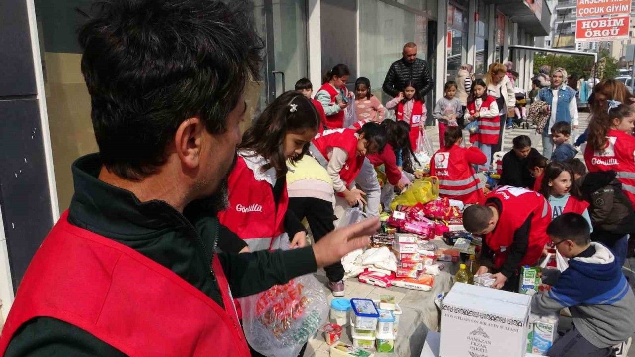 Mersin’de Ramazan ayı nedeniyle ilkokul çocukları örnek bir çalışmaya imza attı, ailelerin desteği ile aldıkları gıda malzemelerini Kızılay ekipleriyle birlikte paketleyip hazırladı.