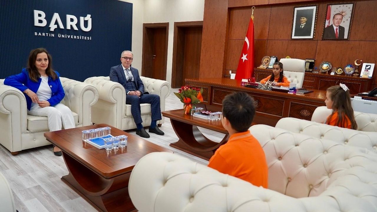 Bartın Üniversitesi (BARÜ) Rektörü Prof. Dr. Orhan Uzun, 23 Nisan Ulusal Egemenlik ve Çocuk Bayramı kutlamaları kapsamında koltuğunu Şiremir Çavuş İlkokulu öğrencilerine devretti.