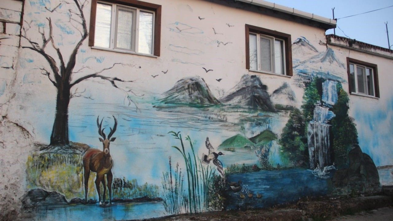 Köyde lojman kiraladıktan sonra işe ilk olarak kendi yaşam alanından başlayan eski resim öğretmeni Özlem Salman, "Okulun lojmanını bana kiraladılar, içini ben kendim yaptım. Çocukluğumdan beri resim yapan bir insanım. Resim yaptığım için ben duran bir insan da değilim. Bir yerleri boyamam gerekiyordu. Baktım tabela aşağıda atıl bir durumdaydı, dedim ki muhtarımıza ben bu tabelaya bir resim yapsam, ismini yapsam köy tabelası falan derken ondan sonra duvar aklıma geldi. Duvara mı bir resim yapsam derken arkadaşlarım var Çanakkale’den, benim kursiyerlerim, onlar da bana gönüllü olarak destek verdiler. Biz buraya geçen sene bir giriştik, bütün duvarları boyadık. Ama şöyle köyümüze göre, öyle kafamıza göre bir şey değil. Ne yansıtıyorsa yani eskiden neyimiz vardı. Köylerimizde eşeklerimiz vardı ama artık yok, bir eşeğimiz olsun istedim. Köyün kahvesine bir eşeğimizi simge olarak koydum. İşte çeşmemizde bakraçlarımız vardı eskiden, şimdi yok, bakraç taşıyan bir ablamız çizdik. Öküzlerimiz vardı, öküzümüz yok, onu çizdik" dedi.
