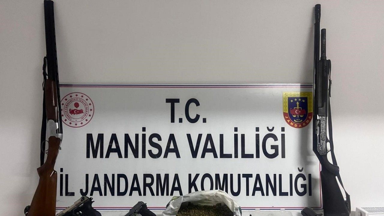 Manisa’nın Soma ilçesinde jandarma ekipleri tarafından bir şahsın evinde yapılan aramada 6 ruhsatsız tabanca, 3 ruhsatsız tüfek ile 970 gram uyuşturucu madde ele geçirildi.