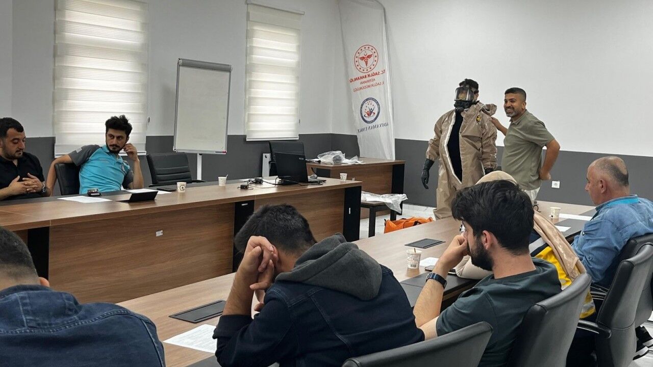 Adıyaman İl Sağlık Müdürlüğüne bağlı Sağlık Hizmetleri Başkanlığı Afetlerde Sağlık Hizmetleri Birimi tarafından sağlık personellerine yönelik KBRN eğitimi verildi.