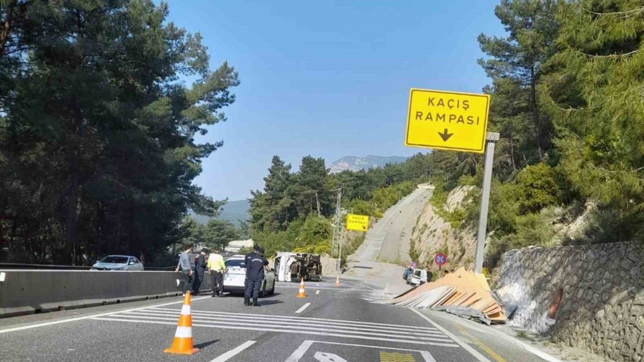 Muğla-Antalya karayolu Sakartepe kaçış rampasında sabah saatlerinde meydana gelen kazada, freni patlayan bir kamyonun neden olduğu kazada bir kişi hafif yaralandı.