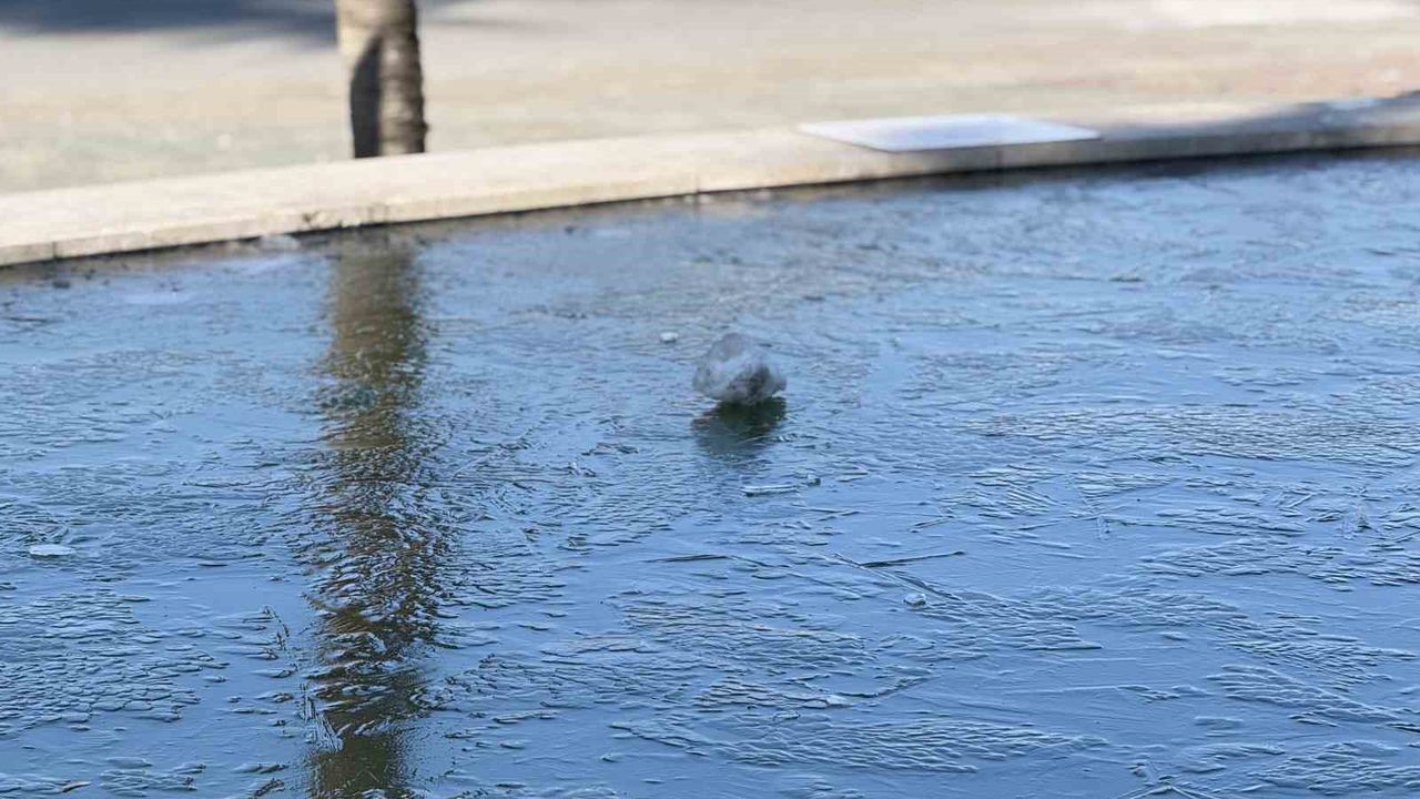 Sakarya’da etkili olan soğuk hava nedeniyle su birikintileri, araçların üstü ve süs havuzları buzla kaplandı.