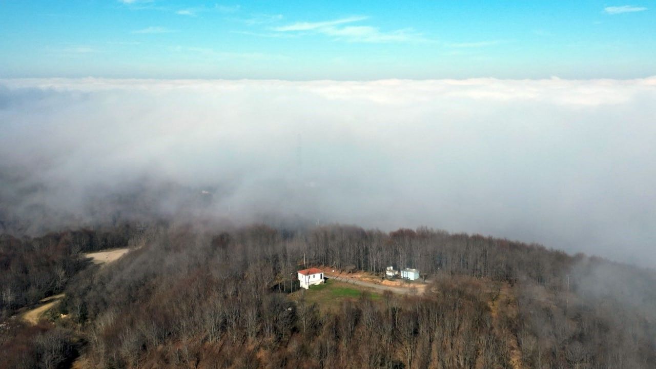 Sakarya’nın Karasu ilçesinde etkili olan sis görüş mesafesini düşürdü. Sis bulutlarının oluşturduğu manzara da havadan görüntülendi.