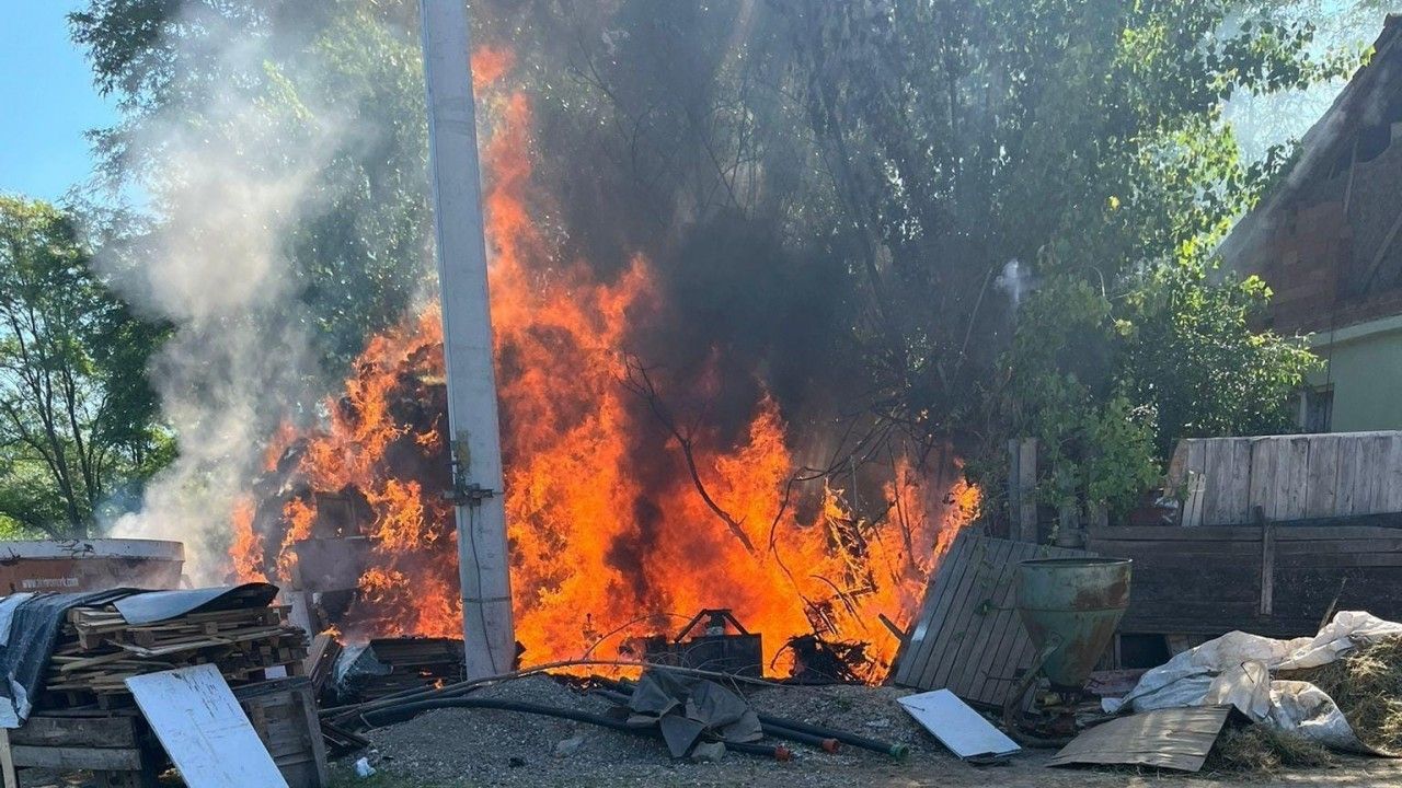 Bursa’nın İnegöl ilçesinde saman balyaları alev alev yandı.