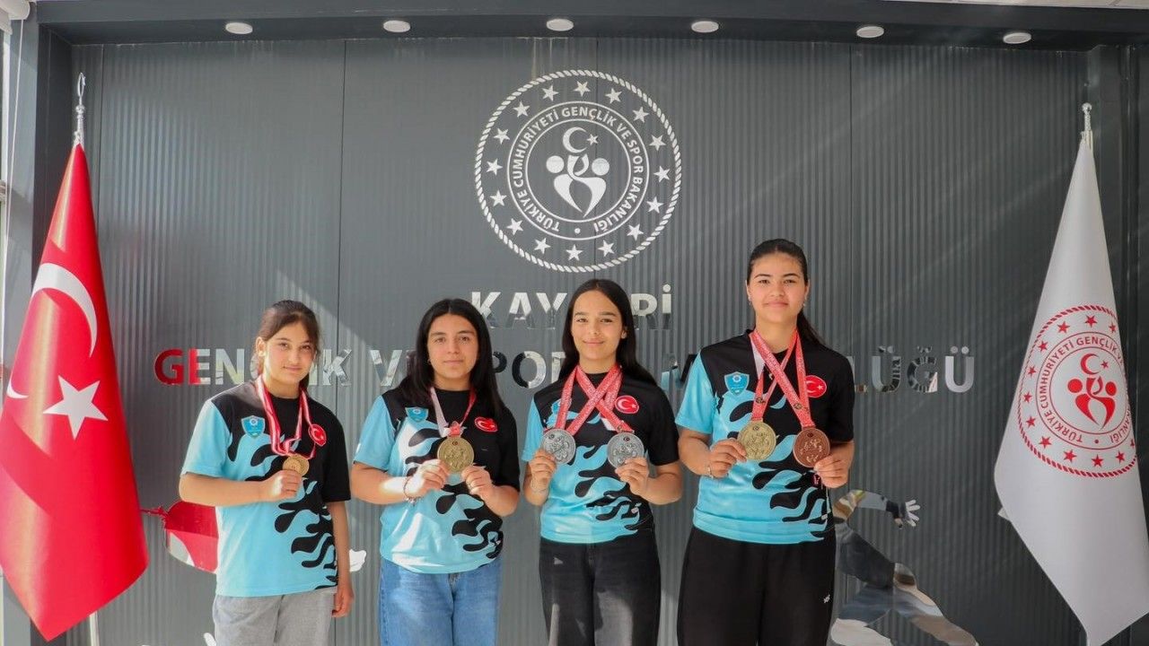 Kayseri’de yapılan Bilek Güreşi Milli Takım Seçmesi ve Türkiye Şampiyonası’nda şampiyon olan Ertuğrul Tacir Oğulları Ortaokulu sporcuları Huri Uçar, Leyla Dulda, Türkiye ikincisi olan Derya Kısa ve Türkiye dördüncüsü olan Gümüş Nur Çarkıt ile Antrenörleri Davut Gökdoğan Kayseri Gençlik ve Spor İl Müdürü Ali İhsan Kabakcı’yı makamında ziyaret ettiler.