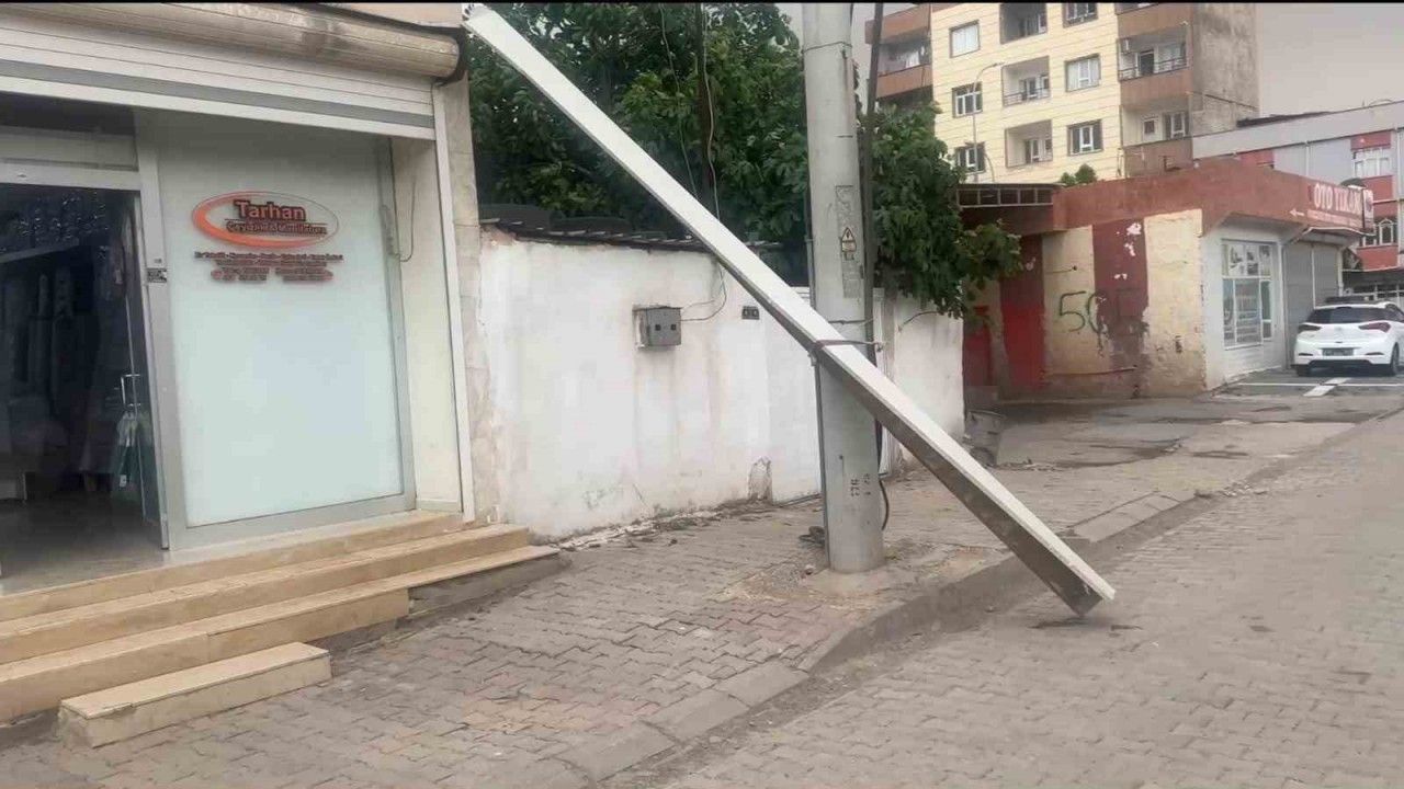 Şanlıurfa’nın Ceylanpınar ilçesinde etkili olan fırtına nedeniyle ağaçlar devrildi. Rüzgarın şiddeti ile birçok iş yeri tabelası yerinden söküldü, havada uçuşan cisimler, yollardaki sürücülere zor anlar yaşattı.
