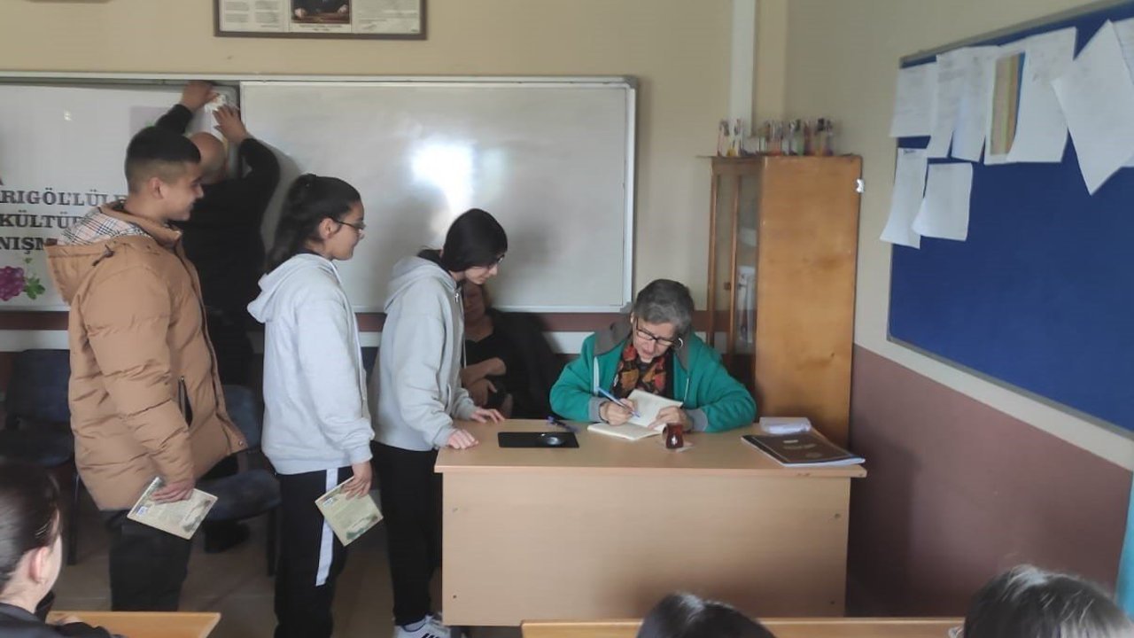’Koca Seyit’ kitabının yazarı Vicdan Efe, "Öncelikle İzmir Sarıgöllüler Kültür ve Yaşatma Derneği’ne teşekkür ederim. Öğrencilerle buluşmak o kadar güzel bir duygu ki, çok mutlu oldum" dedi.