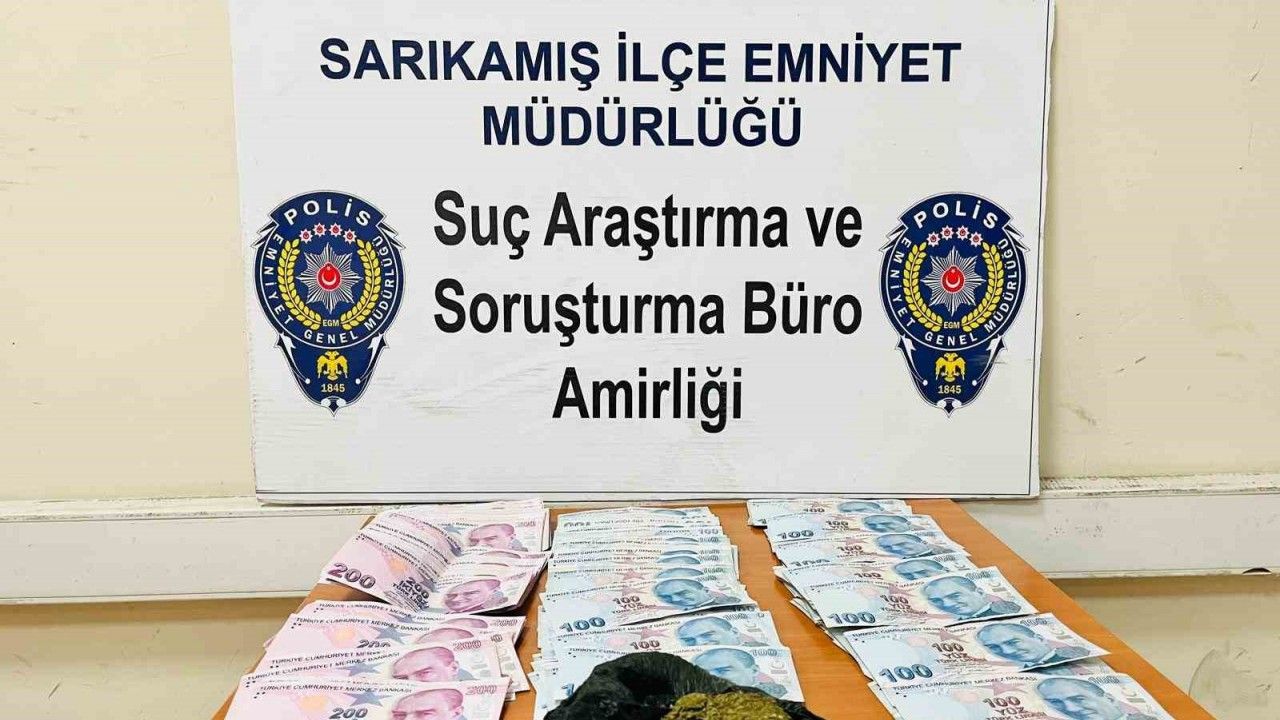 Polis ekiplerince Sarıkamış ilçe girişinde durdurulan otobüste yapılan kontrollerde durumundan şüphelenilen İ.K, (50)’nin üzerinde arama yapıldı. Yapılan aramada, beyaz kağıda sarılı vaziyette 3 uyuşturucu madde olduğu düşünülen hap ele geçirilirken, İ.K.’nın valizinde yapılan kontrollerde ise siyah poşete sarılı vaziyette daralı ağırlığı 88.9 gram gelen toz esrar maddesi ve 41 bin 300 TL nakit para ele geçirilerek muhafaza altına alındı.