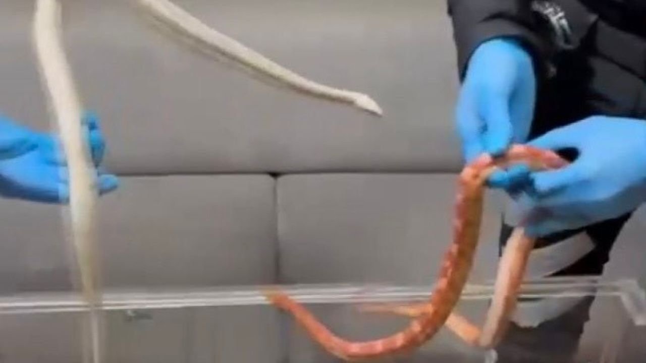 Olay, geçtiğimiz Çarşamba günü akşam saatlerinde Sarıyer Maslak’ta meydana geldi. Edinilen bilgiye göre Sarıyer İlçe Emniyet Müdürlüğü Devriye Ekipler Amirliği ekipleri, şüphe üzerine 34 EVC 099 plakalı aracı durdurdu. Araçta yapılan aramada, bagaj ve arka koltukta cam fanuslar içinde yılanlar bulundu. Durum üzerine hayvanlara el konulurken, yapılan incelemede yılanlardan birinin piton, diğer ikisinin ise zehirli Mısır yılanı (corn snake) olduğu tespit edildi. O anlar cep telefonu kamerasına yansıdı. Görüntülerde, cam fanustaki yılanlar polisler tarafından incelemesi ve teslim edilmesi yer alıyor.