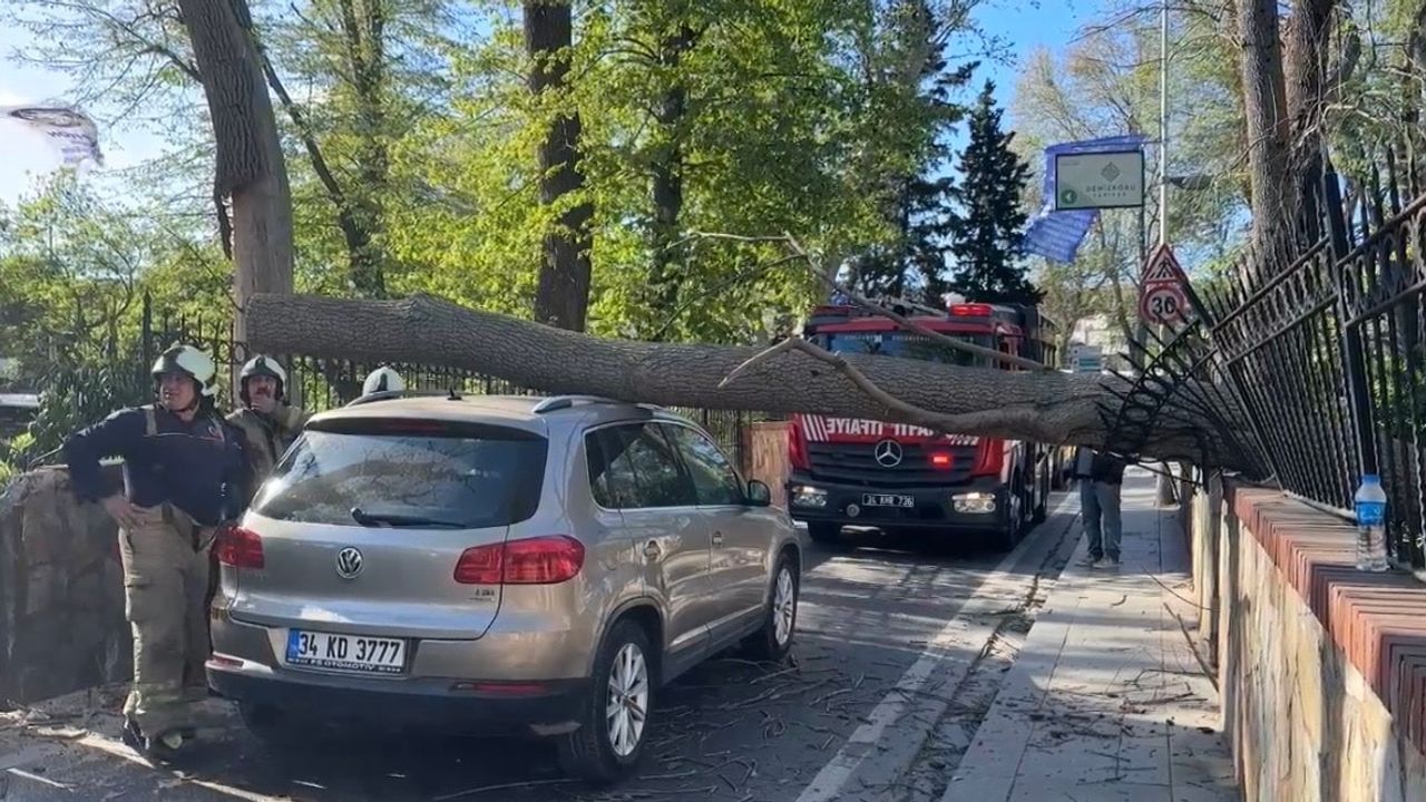 İstanbul Sarıyer’de şiddetli rüzgara dayanamayan ağaç, otomobilin üzerine devrildi. Olayda ölen ya da yaralanan olmazken, araçta hasar meydana geldi.