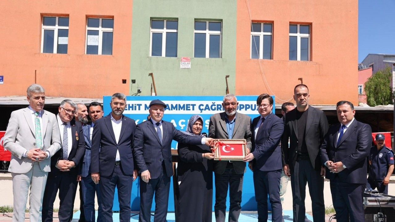 Yapılan konuşmaların ardından Şehit Muhammet Çağrı Toppuz’un adının verildiği sokak için kurdele kesimi yapıldı.