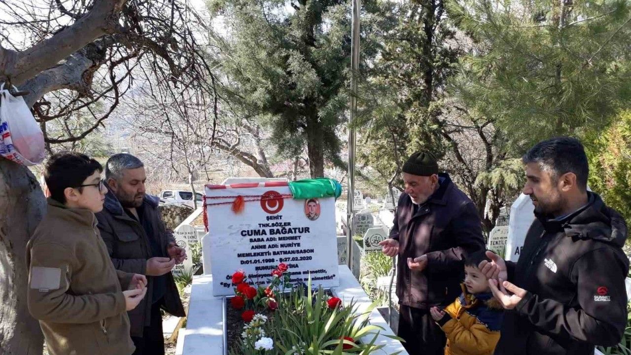 İdlib’de 27 Şubat 2020 tarihinde Esad rejimi unsurlarının hava saldırısı sonucu şehit olan Sözleşmeli Er Cuma Bağatur, Batman’ın Sason ilçesinde mezarı başında dualarla anıldı.