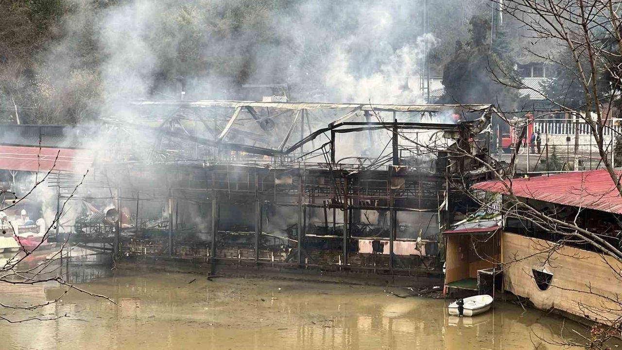 Alınan bilgiye göre, Sera Gölü'nde sabah erken saatlerde bir turistik işletmede bilinmeyen bir nedenle yangın çıktı. İşletmenin ahşap olması nedeniyle kısa sürede yangın tüm tesisi sardı. İhbar üzerine bölgeye gelen Büyükşehir Belediyesi İtfaiye ekipleri, yangına müdahale ederken, alevlerin hızla yayılması nedeniyle işletmede büyük maddi hasar oluştu. Yangında herhangi bir can kaybı ya da yaralanma yaşanmazken, itfayie ekiplerinin soğutma çalışmaları devam ediyor.