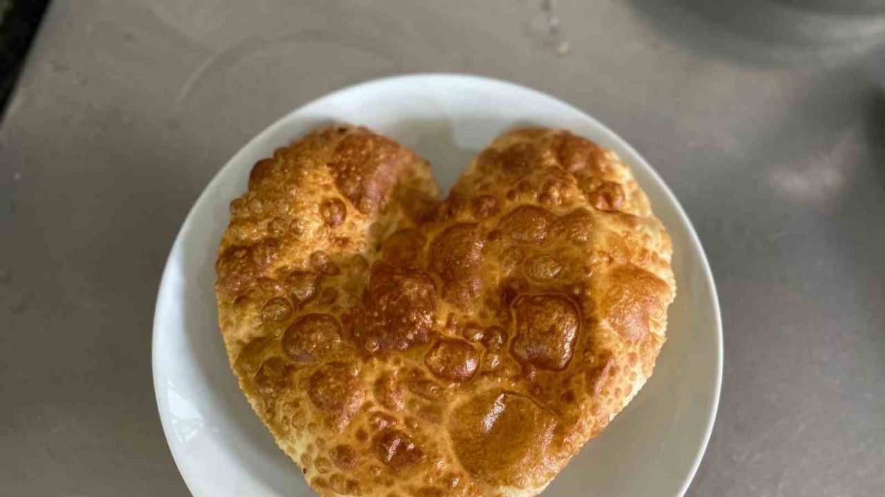 Sevgililer Günü’nde aşkı simgeleyen ürünler dükkânlarda ve raflarda yer alırken, çeşitli tatlar da bugüne özel olarak şekillendi. Eskişehir’in özgün bir lezzeti olan ve genellikle yarım ay şeklinde hazırlanarak ikram edilen çibörek, bir işletme tarafından 14 Şubat Sevgililer Günü’ne özel kalp şeklinde pişirildi.