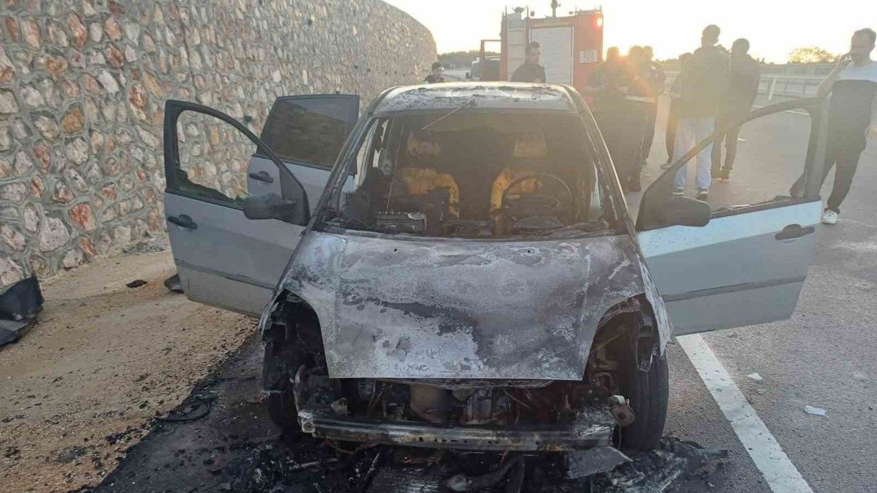 Yaşanan yangında araçta maddi hasar meydana geldi.
