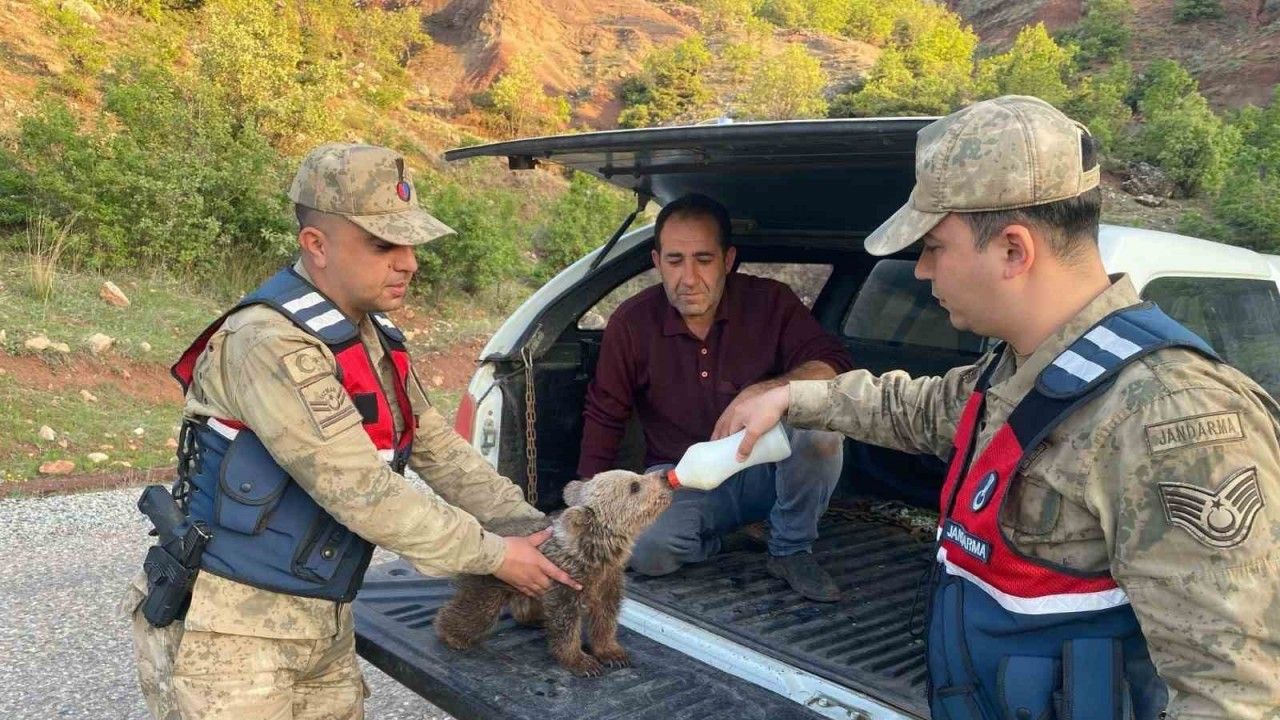 Siirt’te Jandarma tarafından bulunan yaralı Şahin koruma altına alınırken yavru ayıya süt verilip doğaya bırakıldı.