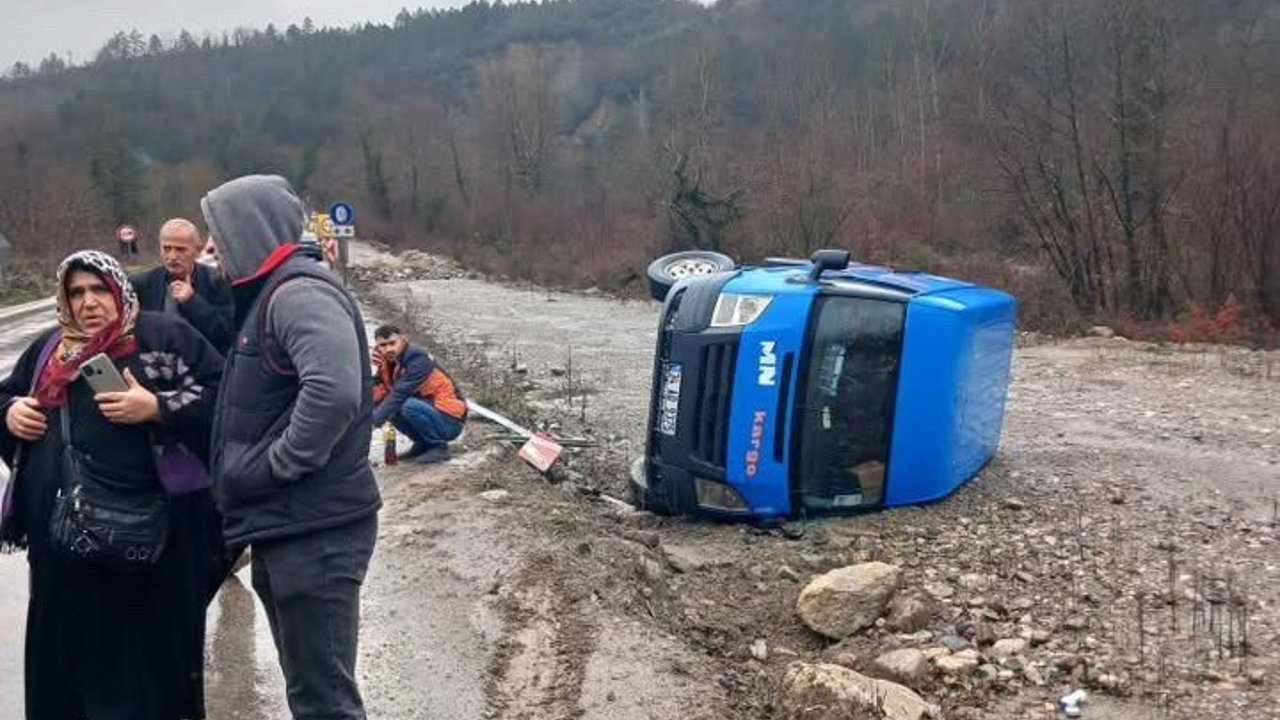 Sinop’ta bir kargo şirketine ait minibüsün devrildiği kaza maddi hasarla atlatıldı.