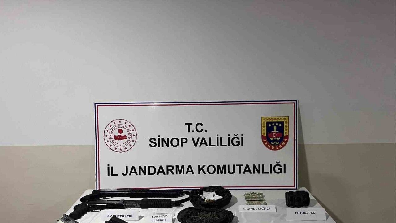 Sinop İl Jandarma Komutanlığı tarafından uyuşturucu ve uyarıcı madde satıcıları ile mücadele kapsamında yapılan operasyonda 55 gram esrar maddesi, 1 gram metamfetamin, 1 gram kenevir tohumu, 1 adet uyuşturucu madde kullanma aparatı, 3 paket sigara sarma kâğıdı, 1 adet hassas terazi, 1 adet fotokapan ve hafıza kartı, 2 adet tabanca, 2 adet ruhsatsız av tüfeği, 13 adet cep telefonu ele geçirildi. Operasyonda yakalanan 2 şüpheli hakkında gerekli adli işlemler başlatıldı.