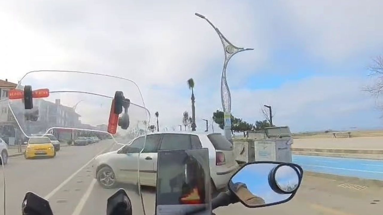 Sakarya’nın Karasu ilçesinde sinyal vermeden park yerinden çıkan otomobile motosiklet çarptı. Maddi hasarın meydana geldiği kazada otomobil sürücüsü kadın, "Döndüğümü görmüyor musun? Çok da yavaş dönüyorum" diyerek motosikletliyi suçladı.