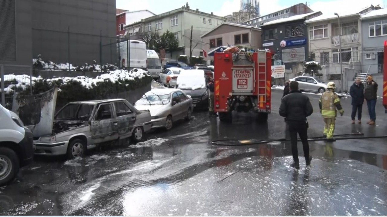 Şişli’de park halindeki bir aracın motor kısmında yangın çıktı. Alev alev yanan araca bir vatandaşın yangın tüpüyle müdahale ettiği anlar cep telefonu kamerasına yansıdı.
